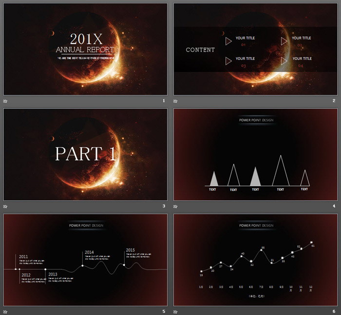 这是一套炫酷唯美星空星球背景PPT模板,共23张。第一PPT模板网提供唯美风格幻灯片模板免费下载;
