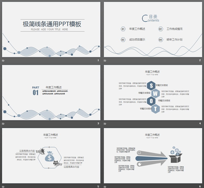 这是一套灰色简洁曲线背景的,通用工作总结计划PPT模板,共30张。第一PPT模板网提供简洁幻灯片模板免费下载;