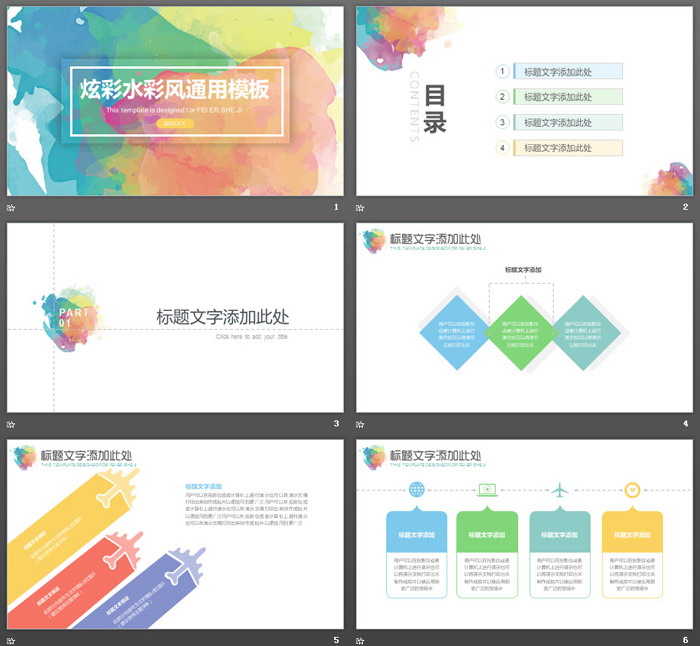关键词:炫彩水彩晕染PowerPoint背景图片,彩色扁平化幻灯片图表,动态时尚PPT模板,.PPTX格式;