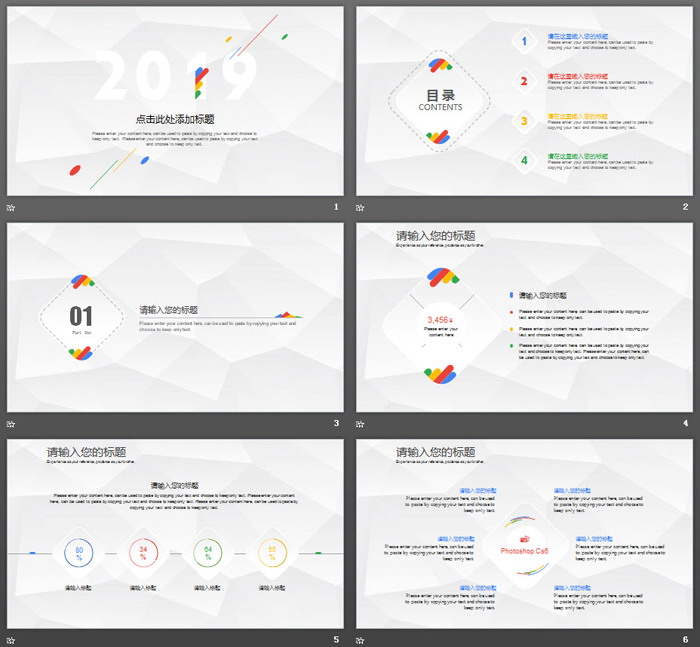 关键词:白色多边形PowerPoint背景图片,彩色简洁幻灯片图表,动态时尚PPT模板,.PPTX格式;