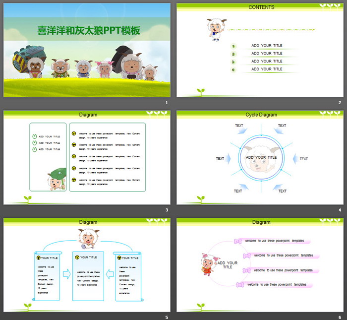 关键词:喜洋洋与灰太狼幻灯片背景图片,可爱卡通PowerPoint模板免费下载,.PPTX格式;