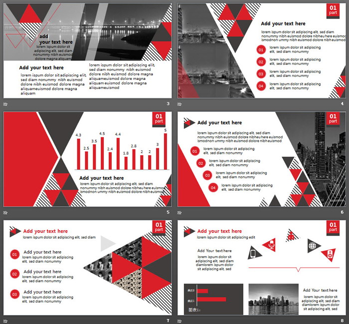 红色欧美三角形排版设计PPT模板
