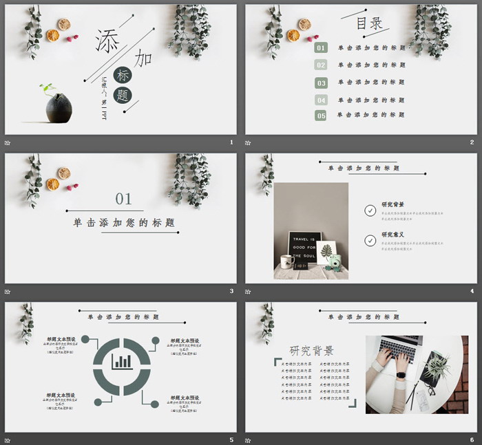 这是一套清新绿叶植物排版毕业答辩PPT模板,共24张。