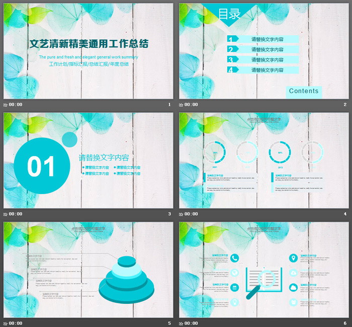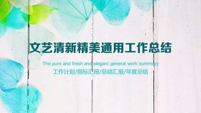 这是一套唯美叶子背景的,清新文艺PPT模板,共21张。