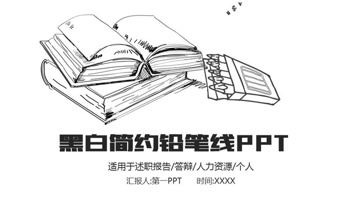 幻灯片模板使用了铅笔手绘风格进行设计。封面使用了一张书籍、铅笔盒图片作为背景。