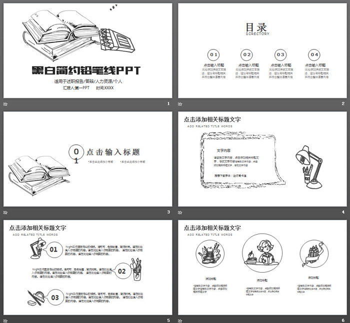 这是一套黑白铅笔素描风格毕业答辩PPT模板,共28张。