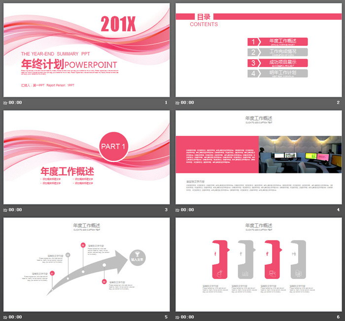 这是一套粉色优美线条背景的,时尚行业工作计划PPT模板,共22张。