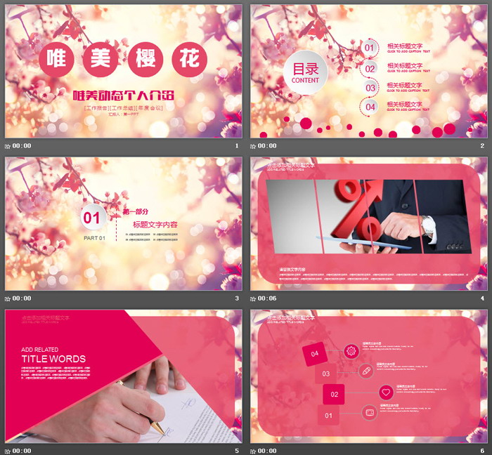 这是一套粉色唯美樱花PPT模板,共22张。