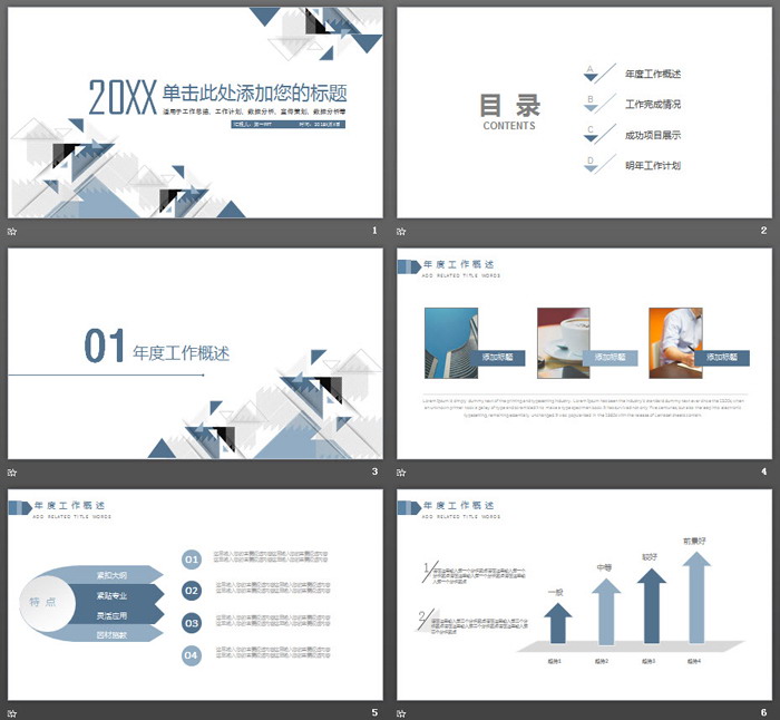 关键词:多边形、三角形背景幻灯片模板,精致年终工作总结PPT模板,.PPTX格式;