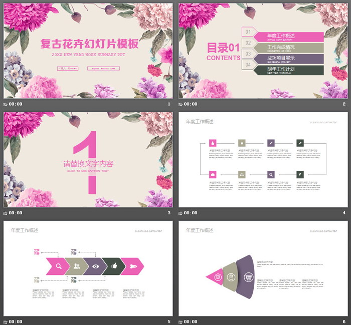 这是一套复古手绘艺术花卉PPT模板,共20在。