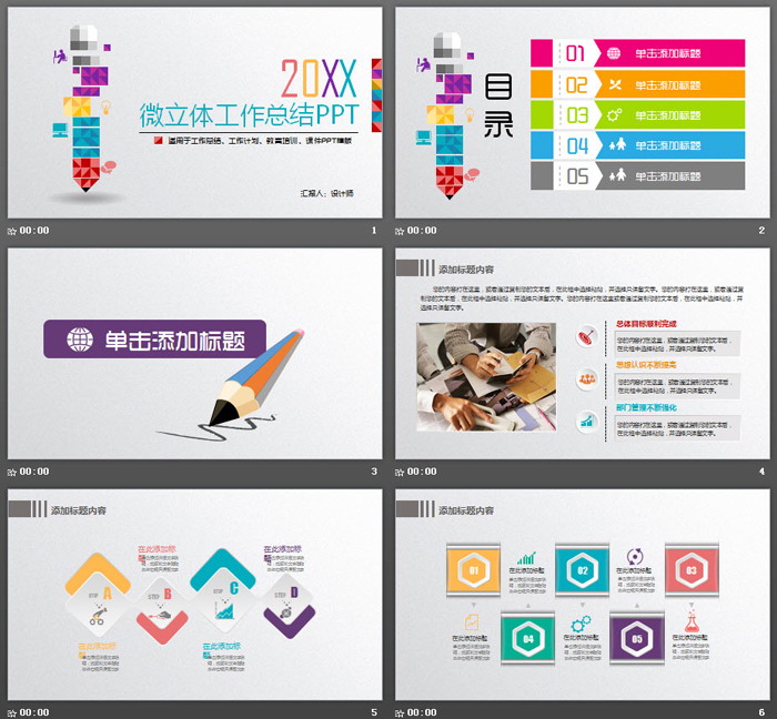 这是一套彩色创意微立体风格的,年底工作总结PPT模板,共25张;