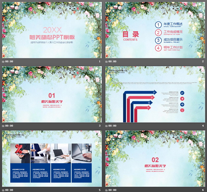 这是一套唯美水彩手绘花卉背景的文艺范PPT模板,共20张;
