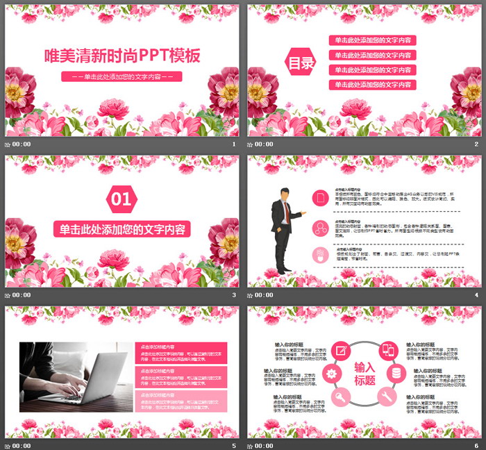 这是一套粉色唯美时尚花卉背景的,艺术范PPT模板,共27张;