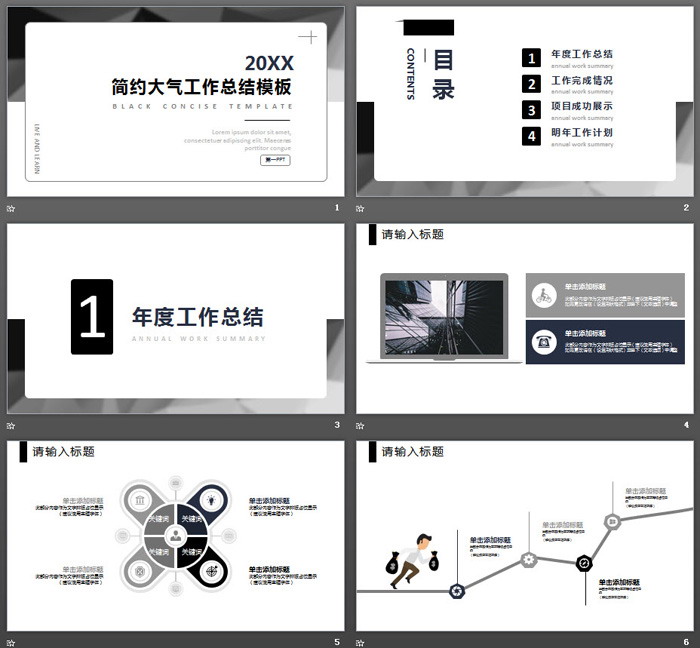 这是一套灰色简洁工作总结PPT模板,共25张;
