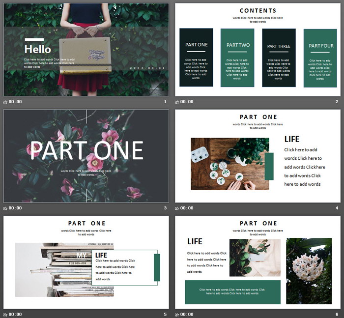 这是一套清新人物花卉图片排版的,欧美范PPT模板,共21张;