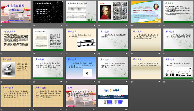 关键词:小星星变奏曲教学课件,一年级下册音乐PPT课件下载,一年级音乐幻灯片课件下载,小星星变奏曲PPT课件下载,.PPT格式;