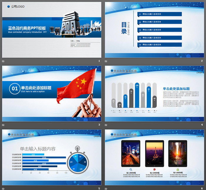 这是一套蓝色简洁合作共赢主题的,公司简介PPT模板,共31张;