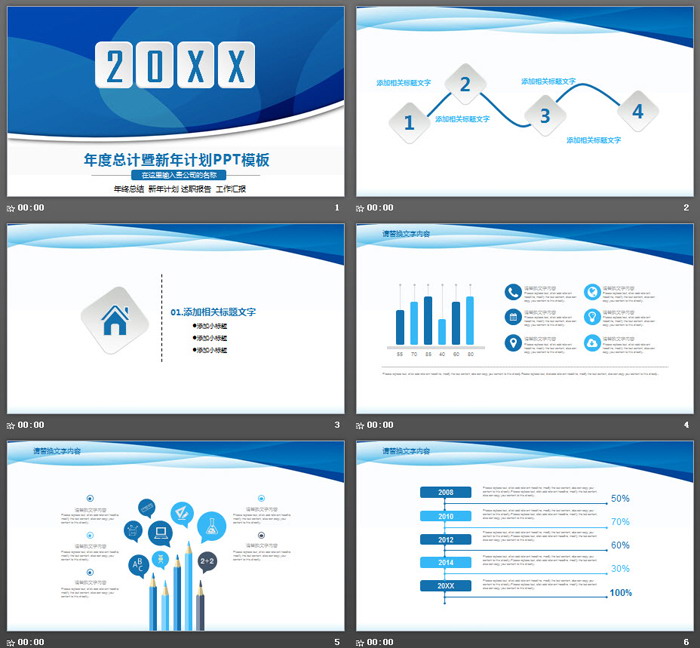 这是一套蓝色实用的,工作总结计划PPT模板,共26张;