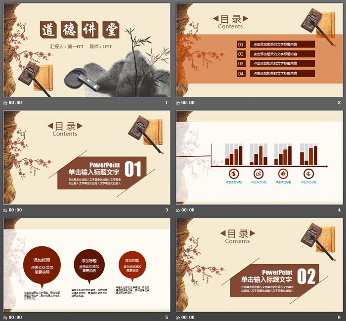 关键词:水墨古典幻灯片模板,动态道德讲堂PowerPoint模板,.PPTX格式;