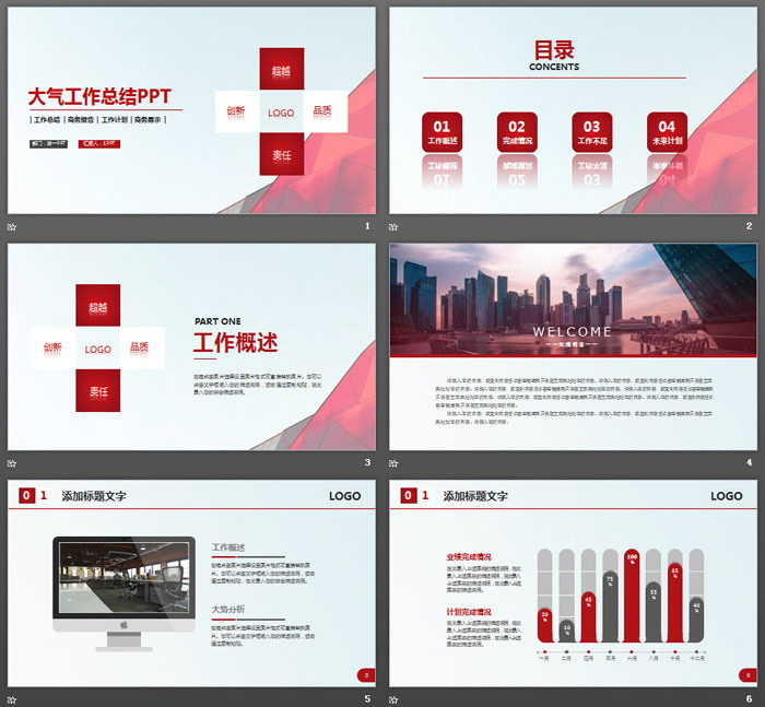 这是一套红色简洁风格的,工作总结计划PPT模板,共34张;