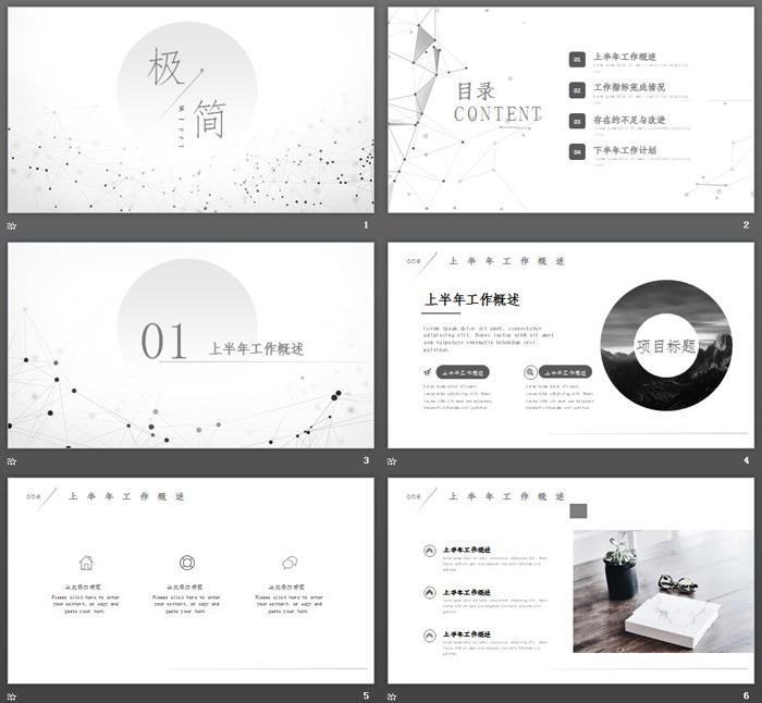这是一套淡雅简洁灰色点线粒子背景PPT模板,共23张;