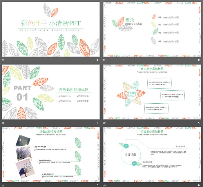 关键词:彩色叶子幻灯片背景图片,清新简洁风格PowerPoint模板,.PPTX格式;