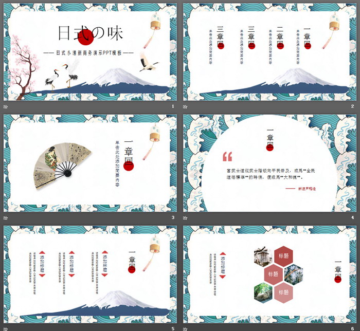 这是一套清新日式浮世绘风格PPT模板,共24张;