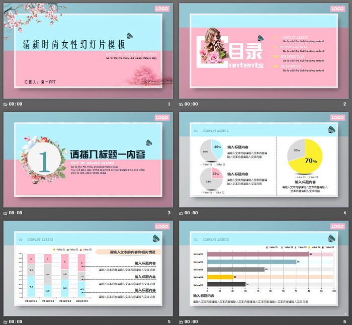 这是一套清新时尚女性行业PPT模板,共29张;