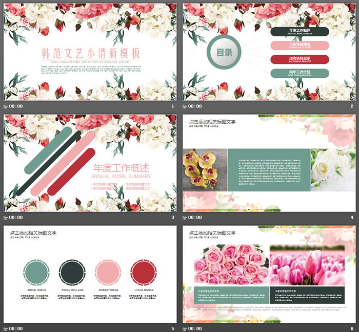 关键词:动态韩范PPT模板,清新花卉背景幻灯片模板免费下载,.PPTX格式;