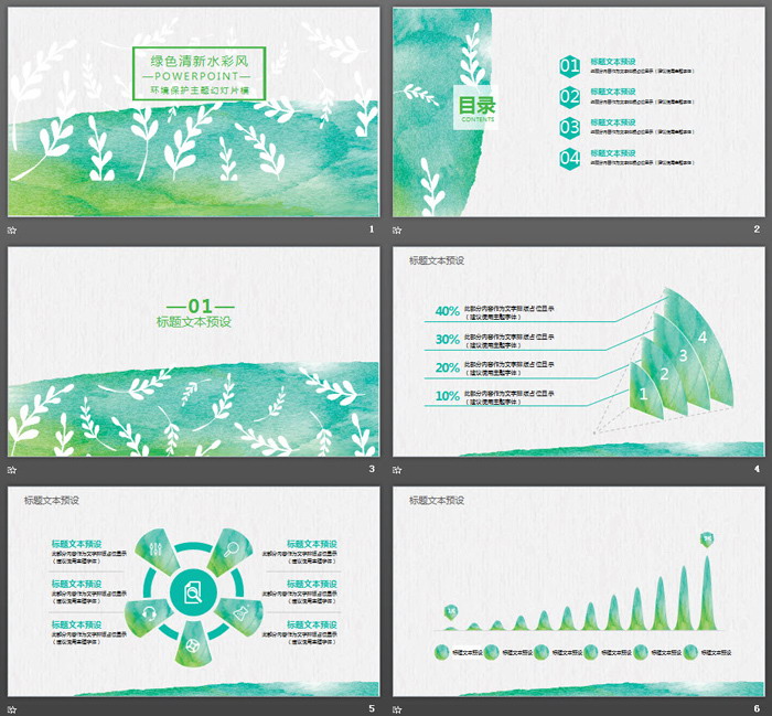 关键词:水彩艺术设计幻灯片模板,清新环境保护PPT模板免费下载,.PPTX格式;