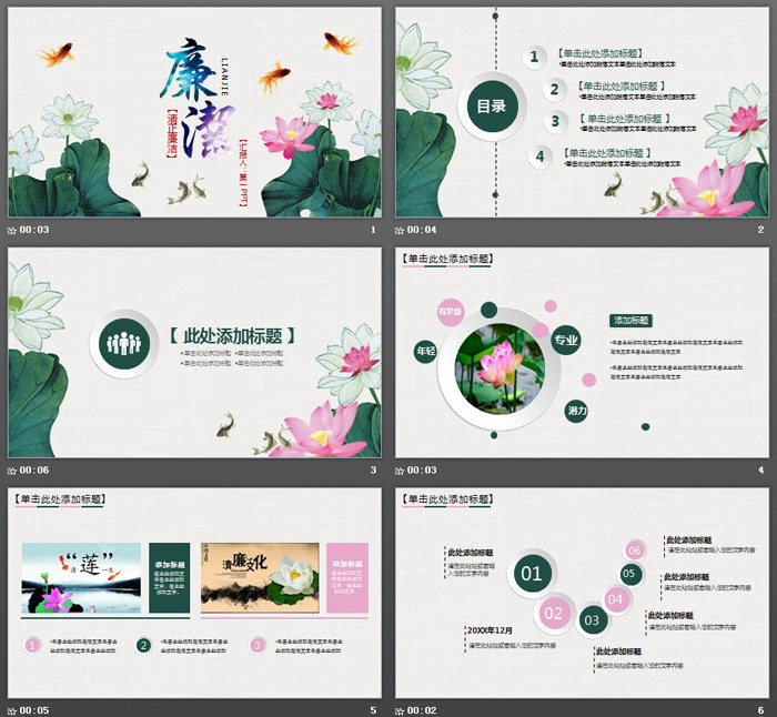 这是一套莲花背景的《廉洁廉政》PPT模板,共26张;
