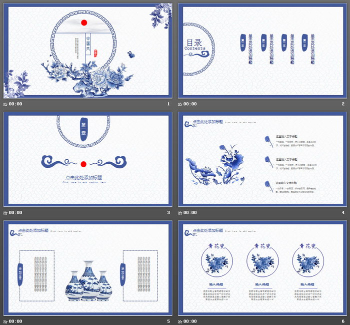 这是一套精致青花瓷古典中国风PPT模板,共25张;
