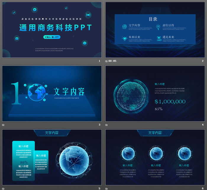 这是一套蓝色精致科技风,通用商务PPT模板,共25张;