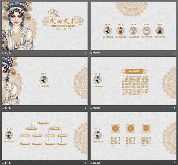 这一套古典风格的,戏曲艺术主题PPT模板。共28张;