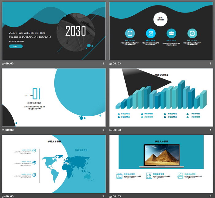 这是一套蓝黑配色的,动感商务PPT模板,共21张;