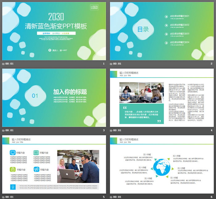 这是一套绿色渐变背景的,通用商务PPT模板,共26张;