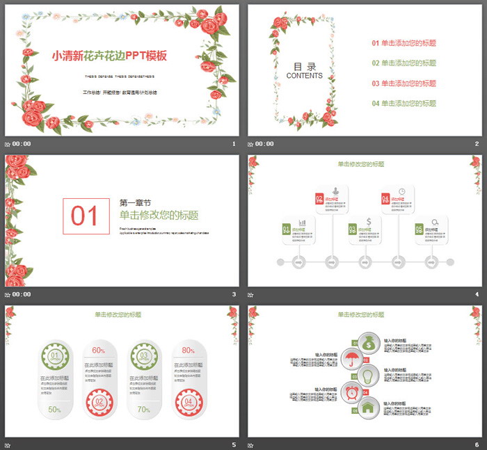 这是一套小清新韩范风格的,花卉边框PPT模板,共28张;