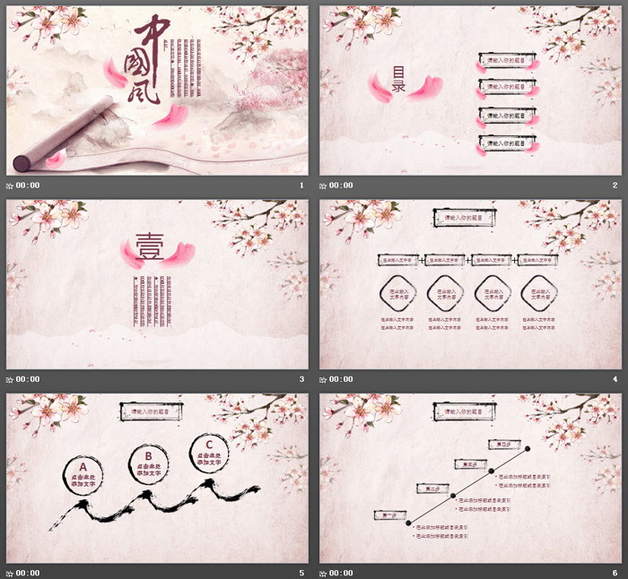 这是一套唯美桃花画卷背景PPT模板,共26张;
