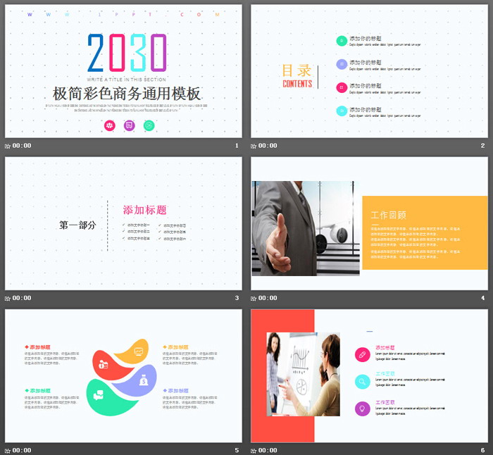 这是一套极简风格的,彩色商务PPT模板,共24张;