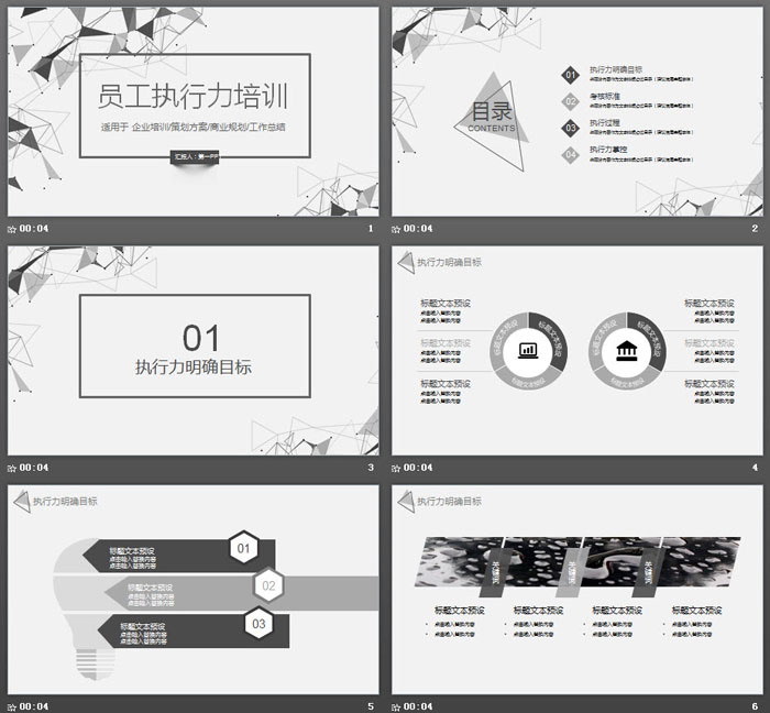 这是一套灰色多边形不简单,员工执行力培训PPT课件模板,共25张;