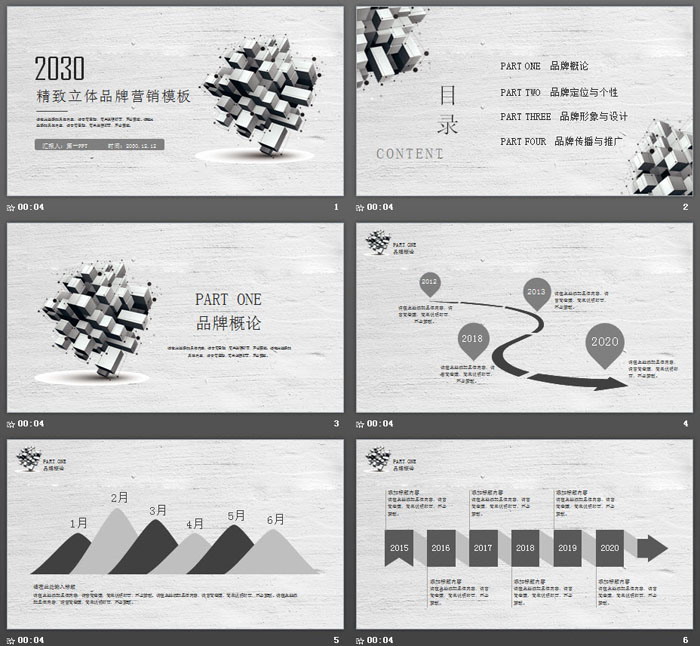 这是一套灰色立体几何体组合背景的,品牌营销PPT模板,共24张;
