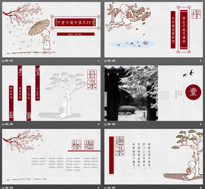 这是一套可爱卡通中国风PPT模板,共24张;