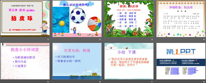 关键词:拍皮球教学课件,一年级下册音乐PPT课件下载,一年级音乐幻灯片课件下载,拍皮球PPT课件下载,.PPT格式;