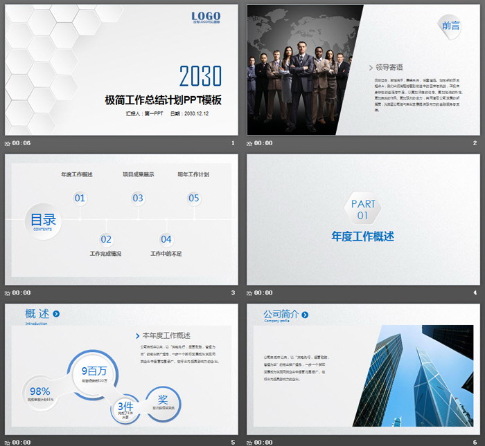 这是一套极简白色六边形背景的,工作总结计划PPT模板,共36张;