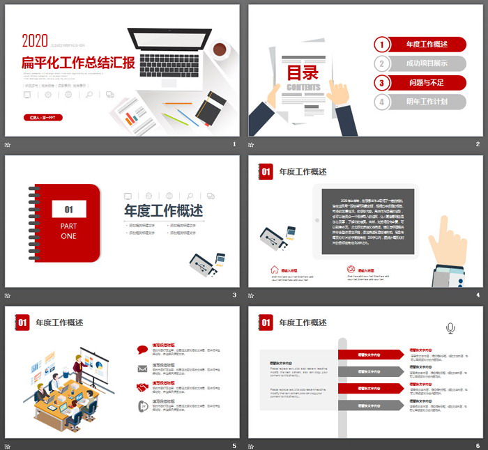 这是一套简洁扁平化风格的,工作总结PPT模板,共29张;