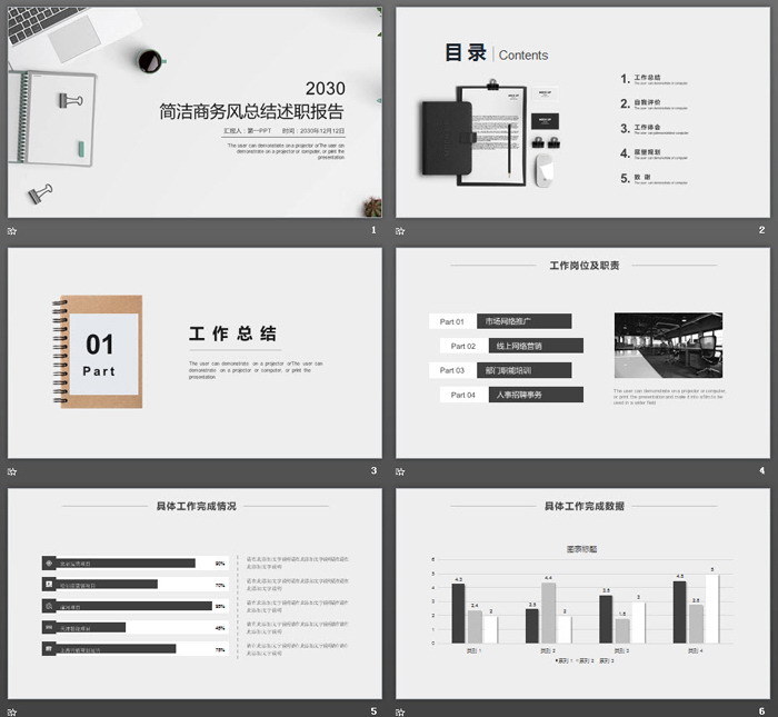 本模板设计简洁实用,适合用于制作各类商务PPT,以及职场幻灯片,如:个人工作计划PPT、工作总结汇报PPT、述职报告PPT等。.PPTX格式;