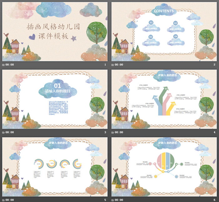 这是一套精美水彩插画风格的,幼儿园PPT课件模板,共26张;