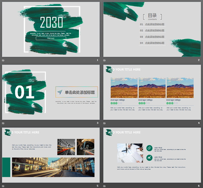 这是一套欧美简洁绿色油画笔触背景PPT模板,共31张;