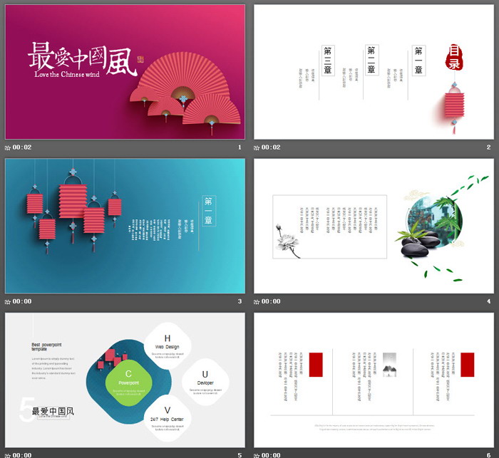 这是一套精致折扇灯笼背景中国风PPT模板,共25张;