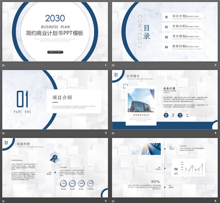 这是一套蓝色圆环背景的,商业融资计划书PPT模板,共40张;